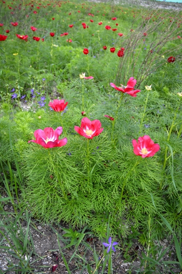 Воронежские ученые уже назвали эти места «Лазоревые степи» из-за восхитительного красно-розового аспекта, который создает цветение пиона тонколистного. Этот вид включен в Приложение I Бернской Конвенции, список растений Красной книги России и Воронежской области. Кроме пионов с темно-бордовой цветком в «Лазоревых степях» встречаются пионы с розовыми и бело-розовыми цветками. Эти популяции для Центрального Черноземья пока известны только в Подгоренском районе. Ближайшие местонахождения этих популяций находятся в районе с.Калиново Донецкой области, и в окр. г.Пятигорска Ставропольского края. Они являются уникальным природным объектом и нуждаются в дополнительном изучении и охране. «Лазоревые степи» богаты и другими редкими степными растениями. Отмечается 7 видов Красной книги РФ и 18 – Красной книги Воронежской области.