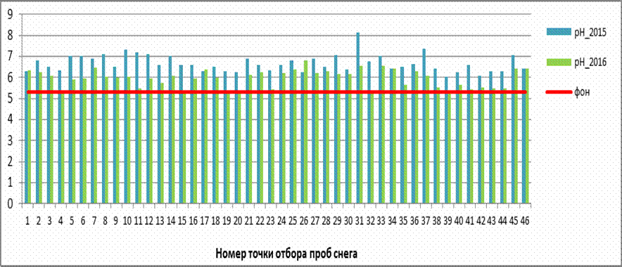 Рис. 2. Изменение величины рН в пробах снега |